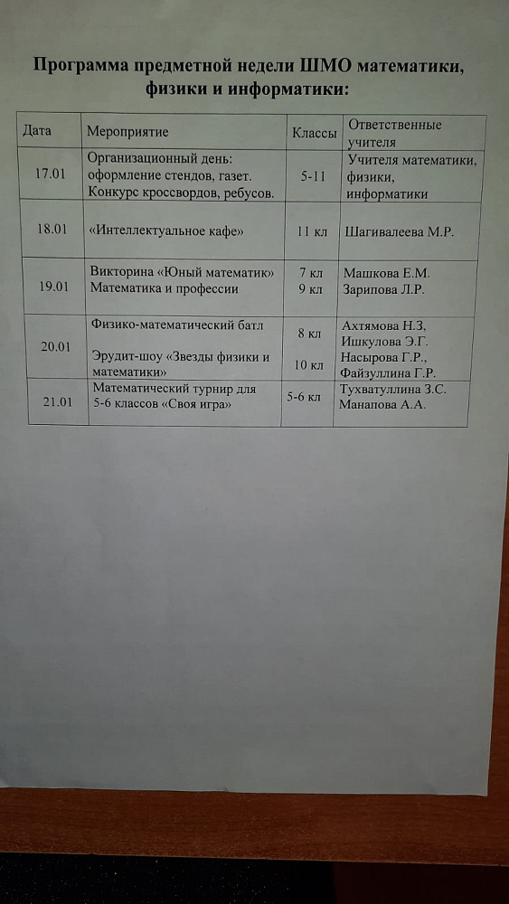 Предметная неделя математики, физики, информатики