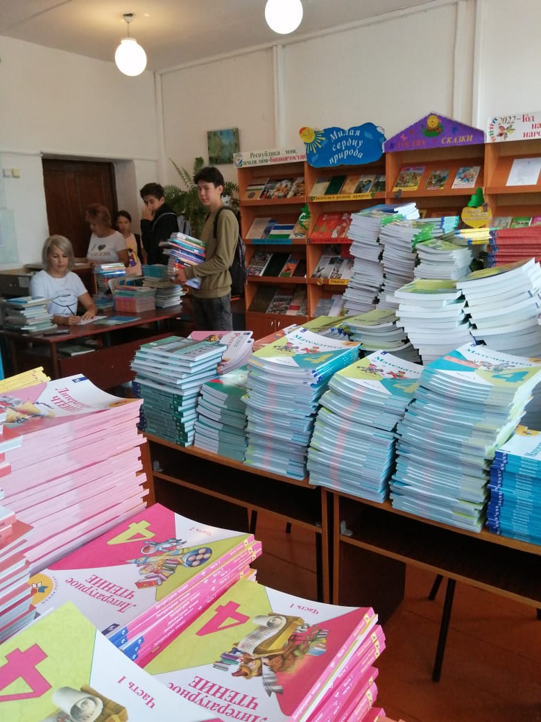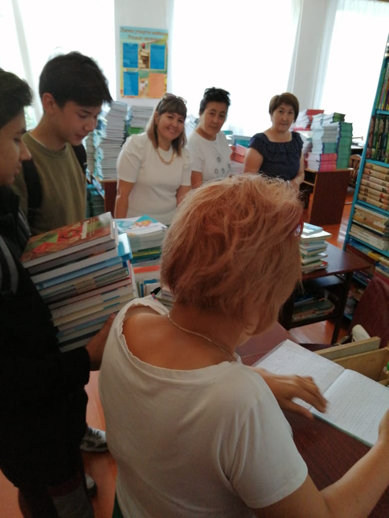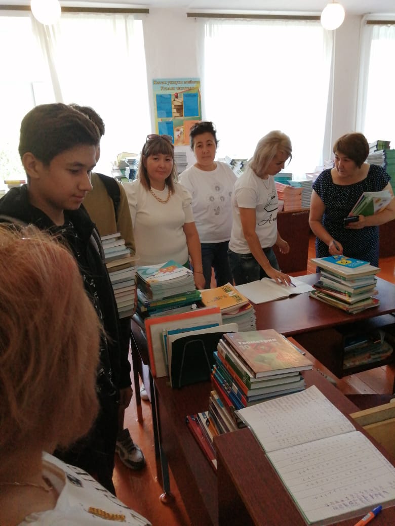 В школьной библиотеке кипит работа. Классные руководители получают учебники для своих учеников. Десятиклассники, принятые в школу, приходят за своим комплектом учеников. Библиотекари Мария Николаевна и Салиха Арслановна получили заказ и после раздачи будут дозаказывать или обмениваться учебниками с библиотеками других школ