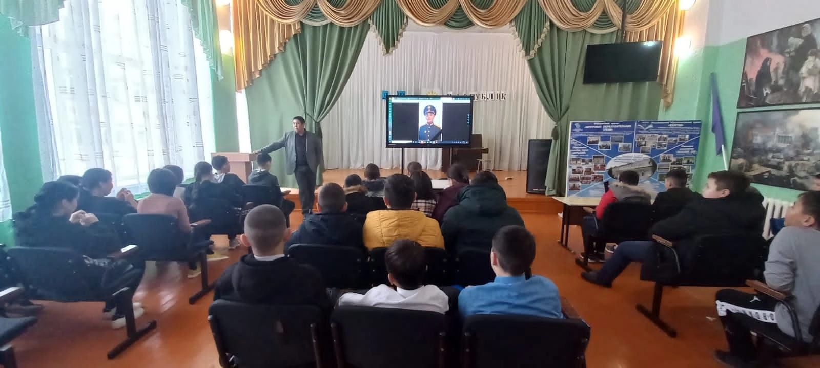 Также и наши учащиеся 6Б класса не остались в стороне. Советник директора по воспитательной работе Уелданова Л.В. и классный руководитель 6Б класса, учитель истории Салихов Д.Ф. провели памятное внеурочное мероприятие - Вечер памяти с Таминдаром Галиуллином.
