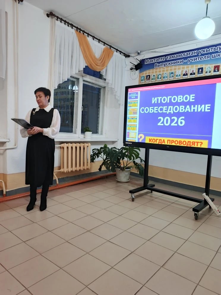 Директор школы Ямалова М.Я.приветствовала собравшихся и отметила важность текущего этапа подготовки выпускников 9-х классов к следующему жизненному шагу. Было подчеркнуто, что сегодняшний разговор посвящен обсуждению особенностей индивидуальных собеседований (ИС-9), психологической подготовке к ним и особенностям выбора профессии и дальнейшего обучения.