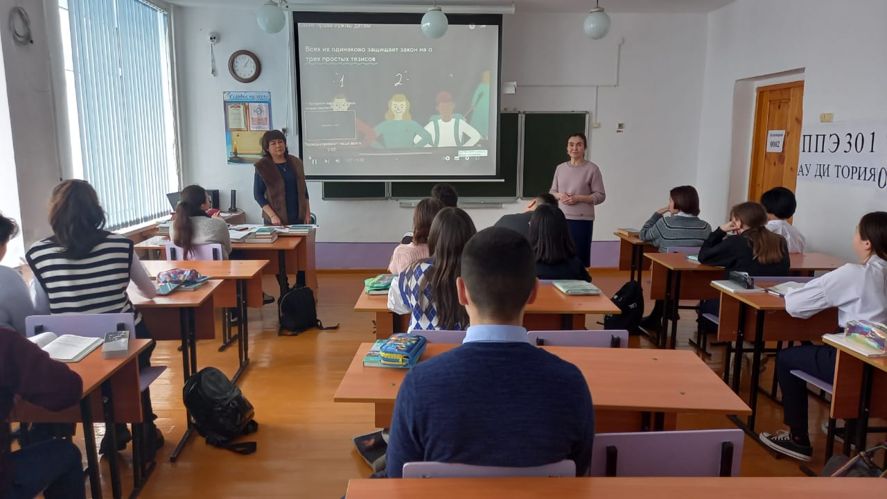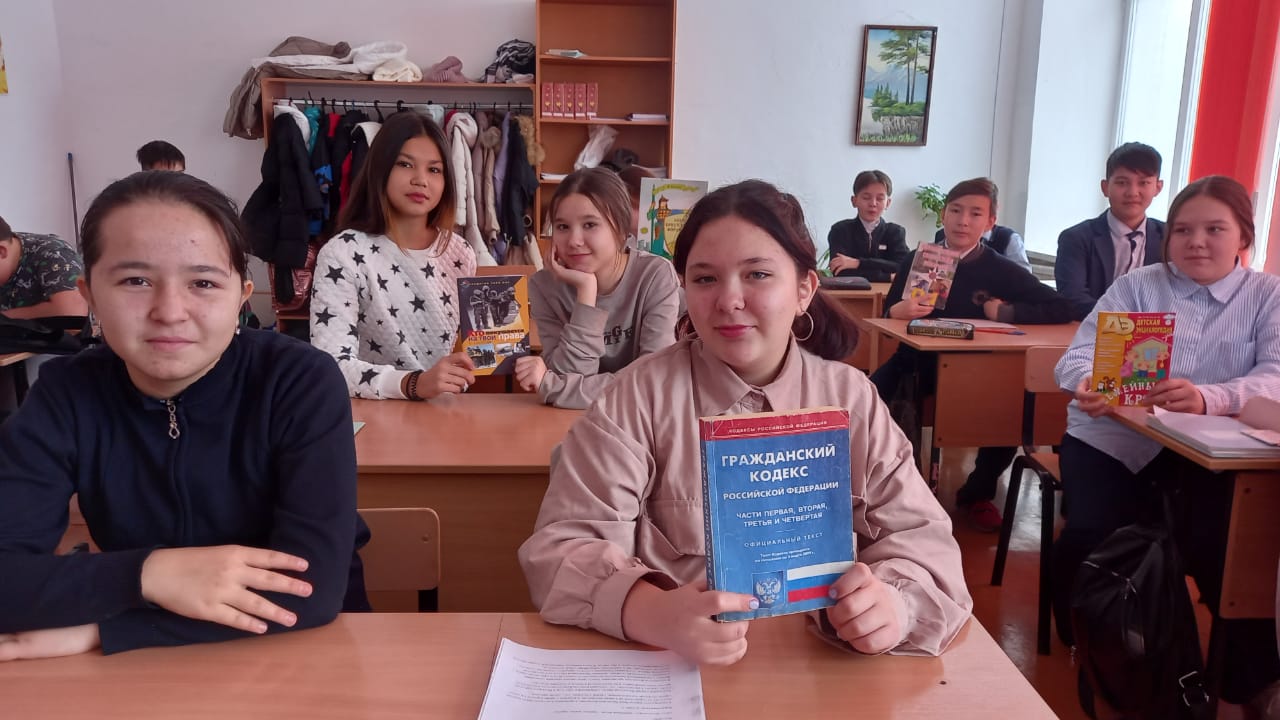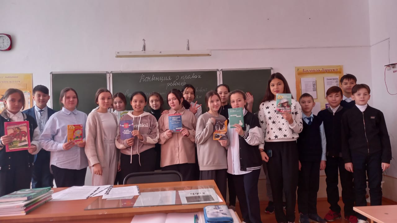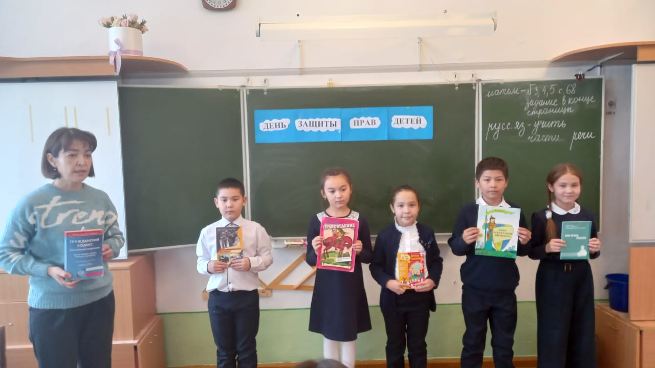 Классные руководители провели тематические классные часы. Для учащихся вторых классов педагог- психолог Махиянова М.К провела игру- викторину: " Я имею право". Учащихся третьих классов педагог- психолог Хайретдинова Д. Т ознакомила правами и обязанностями, о правовой помощи детям.