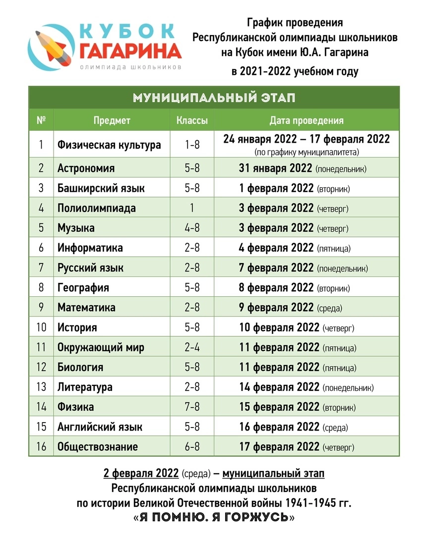 Список участников МЭ олимпиады "Кубок им.Ю.Гагарина"