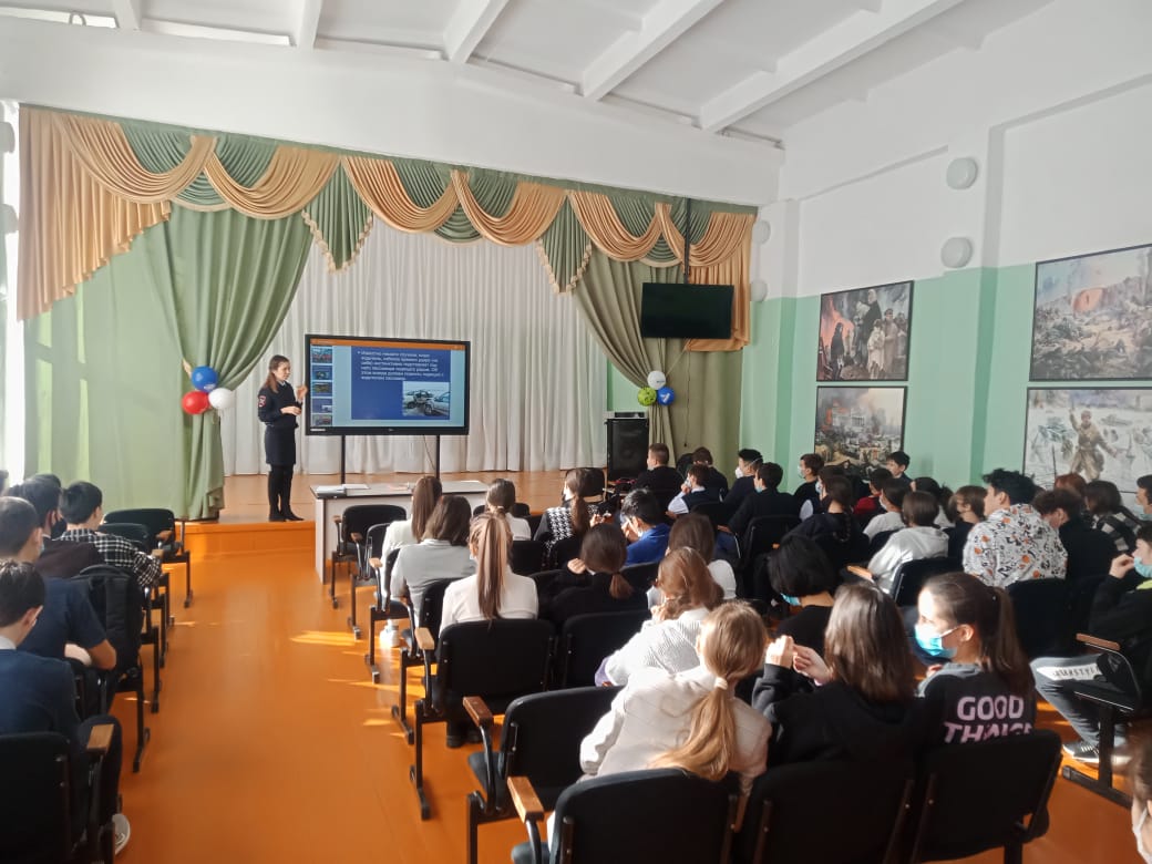 22 февраля инспектор ГИБДД по пропаганде Давлеткулова И.И. посетила нашу школу и рассказала нашим учащимся о состоянии дорожной аварии в районе, разбирали с ребятами ситуационные задачи. Напомнила учащимся о ПДД, необходимости наличия и использования светоотражающих элементов на одежде. В ходе беседы было продемонстрировано видеоролики по ПДД.
