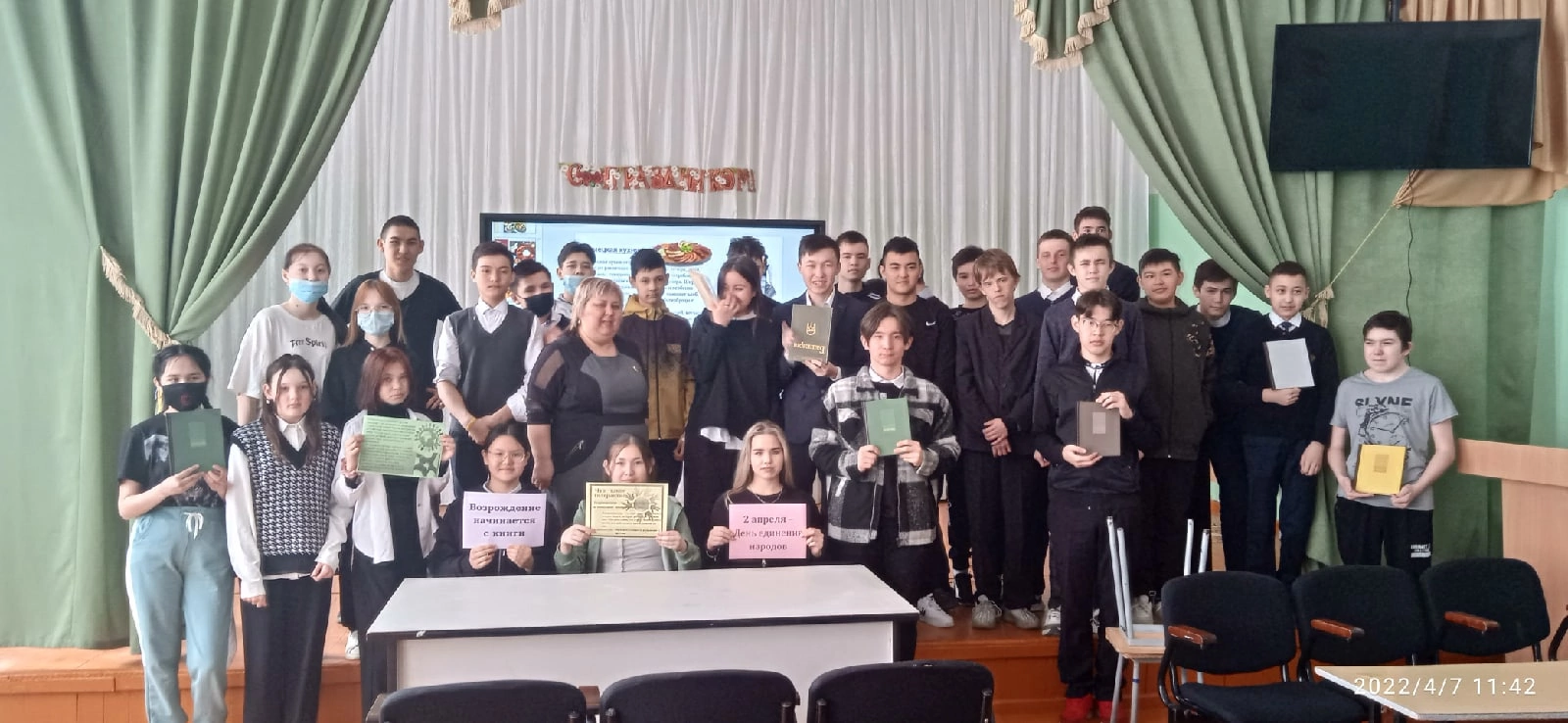 Не все знают, что 2 апреля – День единения народов. Для учащихся старших классов МБОУ СОШ №1 с.Аскарово состоялся урок-диалог «Возрождение начинается с книги» посвященный формированию толерантности и культуре межнационального общения. Мир национальных культур огромен и многообразен. Только узнав чужую культуру, прикасаясь к истокам народной жизни, можно сохранить мир и согласие, научиться уважать традиции и обряды людей, говорящих на других языках. Присутствующие на мероприятии узнали, что на территории района проживает около 10 национальностей, познакомились их историей, культурой и традициями. Была представлена презентация «Национальная кухня народов России».Библиотекарь провела обзор книг с рецептами блюд башкирской, татарской ,русской национальной кухни. Подростки особенно заинтересовались новинками книг : «Лошадь. О башкирской породе лошадей» (С.Р.Чураева,И.А.Ахатова), «Ремесла башкирское народное искусство» (С.Н.Шитова), «Пчела о башкирской бортевой пчеле» (Н.Шмидт), «Акбузат.Башкирский эпос» (перевод Ф.Черепанова).